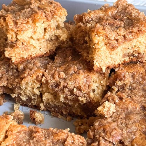 The crumb is soft and tender, layered with cinnamon sugar, and finished with a buttery streusel topping that feels both simple and special. It’s an easy, from-scratch bake that’s perfect for slow mornings, gatherings, or just making an ordinary day feel a little cozier. Pair it with your morning coffee or even a quiet glass of tea to start the morning right!