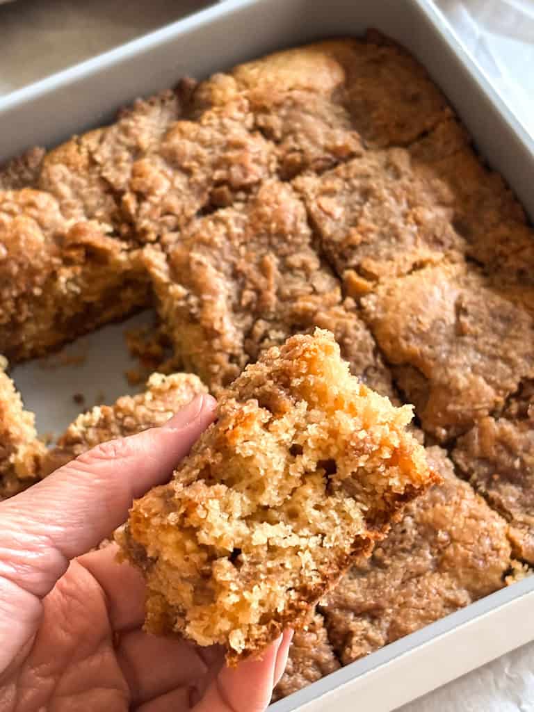 This layering gives you that ribbon of cinnamon goodness in the middle — the kind of bite where every bite melts into soft cake and sweet crumble—my kids’ favorite part!