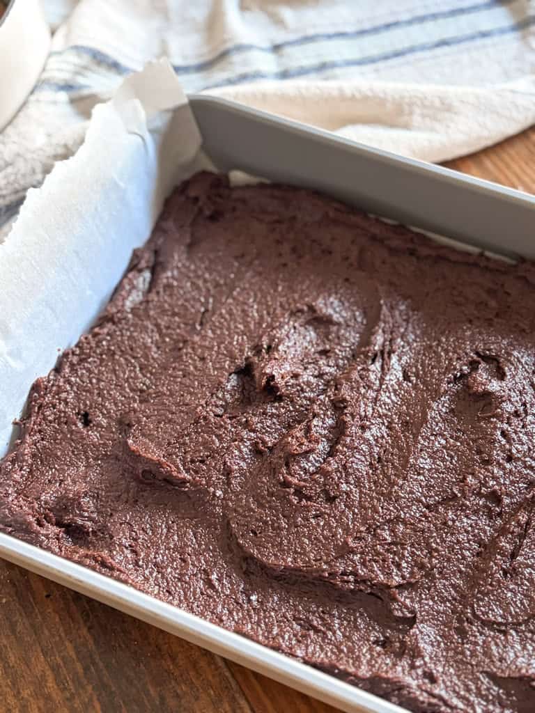Preheat and Prepare—Preheat your oven to 350°F. Grease a 9×13-inch pan, or line it with parchment paper to create a sling for easy removal. I love using parchment because it makes lifting and slicing so simple once the brownies cool.
