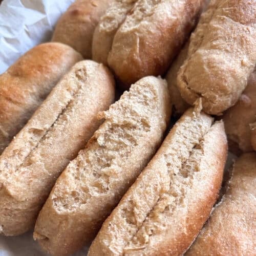 I am thrilled that these homemade hot dog buns come together quickly using yeast and freshly milled hard white wheat, giving you a soft, fluffy texture with just the right amount of structure. Theyāre sturdy enough for grilling and toppings but tender enough to feel special. Itās a simple, from-scratch recipe that makes everyday mealsāespecially summer cookoutsāfeel a little more homemade and nourishing.