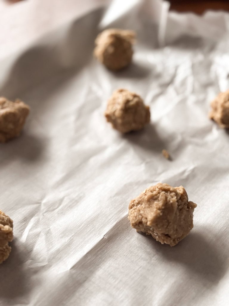 Scoop and Bake—Preheat your oven and line prepared baking sheets with parchment paper. Scoop the dough using a tablespoon cookie scoop (l inch sized balls) into evenly sized cookie dough balls and place them in a single layer on a parchment-lined baking sheet or large baking sheet.
