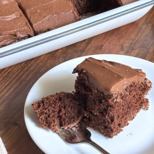 - Easy sheet pan format – Forget multiple cake layers and fussy decorating. Bake once in a greased cake pan, frost, and serve.